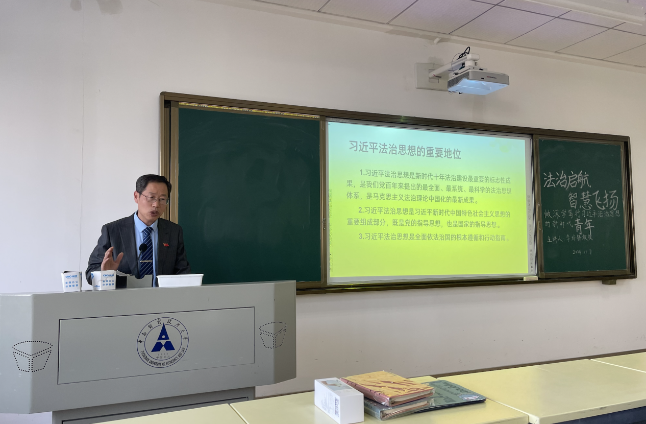 本次讲座有幸邀请到中南财经政法大学法学院教授、法律史专业硕士生导师、全国外国法制史研究会理事李培锋教授主讲,主题为“法治启航·智慧飞扬”做深学笃行习近平法治思想的新时代青年。