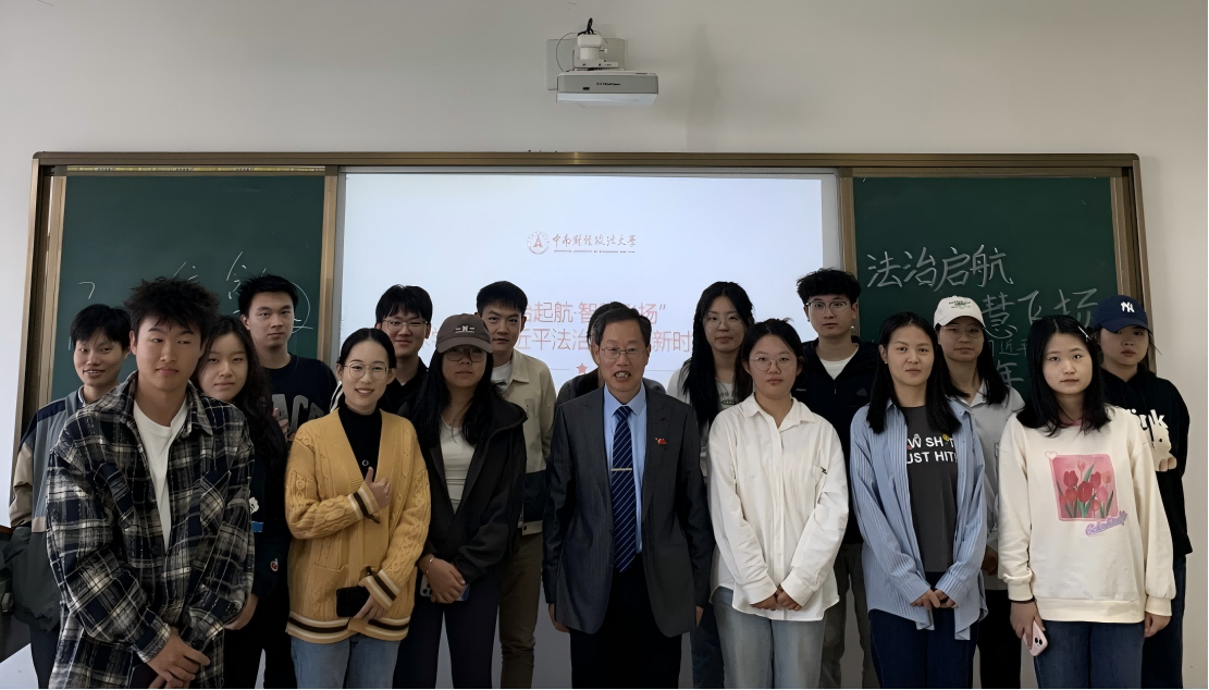 在讲座结束后,李教授和参与同学一起合影留念,鼓励大家务必要做深学笃行习近平法治思想的新时代青年。