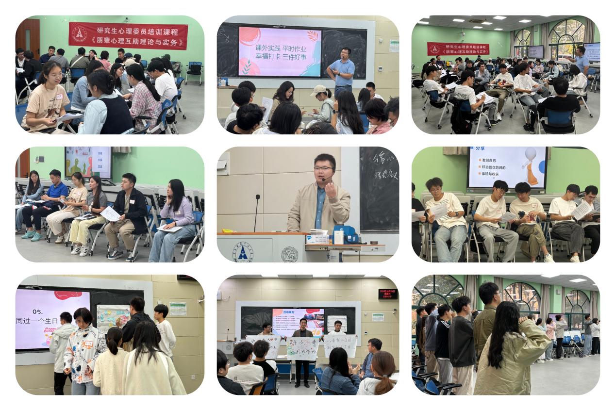 (通讯员 付慧娟 黄丽琼 摄影 马伊莎)为提升研究生班级心理委员岗位胜任力及心理知识实际运用能力,充分发挥其在朋辈心理健康教育工作中的重要作用,党委研究生工作部联合心理健康教育咨询中心于本学年继续开设《朋辈心理互助理论与实务》公共选修课,面向2024级研究生新生心理委员开展专题培训。课程于本学期第4-7周授课,心理健康教育咨询中心余金聪副教授主讲。