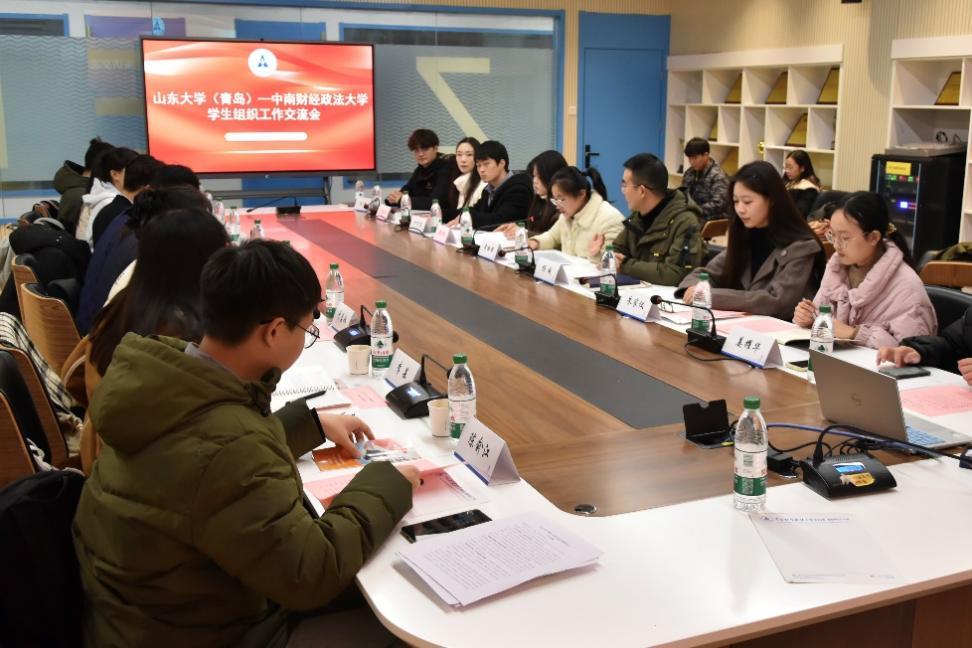 (通讯员 付慧娟 张嘉煜)12月10日下午,中南财经政法大学研究生会与山东大学(青岛)研究生会工作交流会在中南财经政法大学南湖校区大学生素质教育中心1号会议室顺利举行。我校研究生管理办公室主任杨威老师、研究生思想政治教育办公室黄丽琼老师,山东大学(青岛)学生工作部副主任科员汪桐萱老师及学生工作部办公室主任成洪森老师出席本次会议。我校研究生会骨干代表、山东大学(青岛)研究生会骨干代表参与本次会议。会议由我校研究生思想政治教育办公室黄丽琼老师主持。