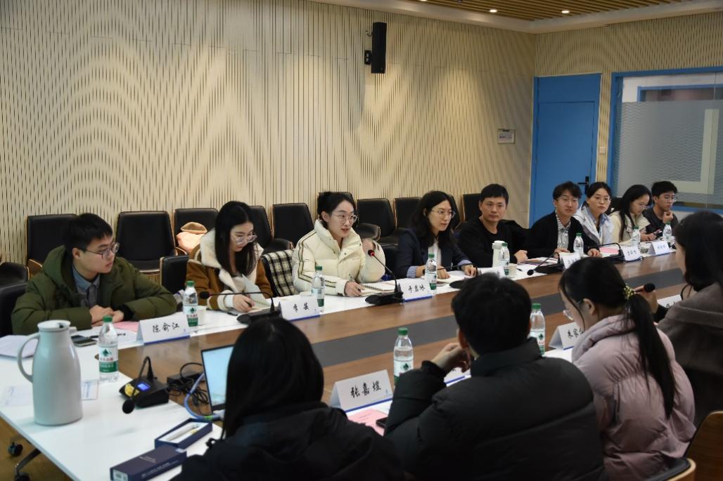 随后,我校研究生会主席团成员分别对研会各部门基本情况进行介绍。朱家仪同学介绍了秘书处在研究生骨干队伍建设、制度化管理以及三级联动机制上的工作成果。杨雨同学结合具体案例展示了学术部与文体部的活动成效。严宇飞同学分享了生活权益部在学生权益方面的保障工作开展及研会特色党支部活动方面的突破。张嘉煜同学重点介绍了联络服务部在对外联络,对内服务、物资管理及活动统筹中的重要作用。姜耀华同学对宣传部下设的五个职能小组进行具体介绍,并展示了工作中不断创新优化的成果。