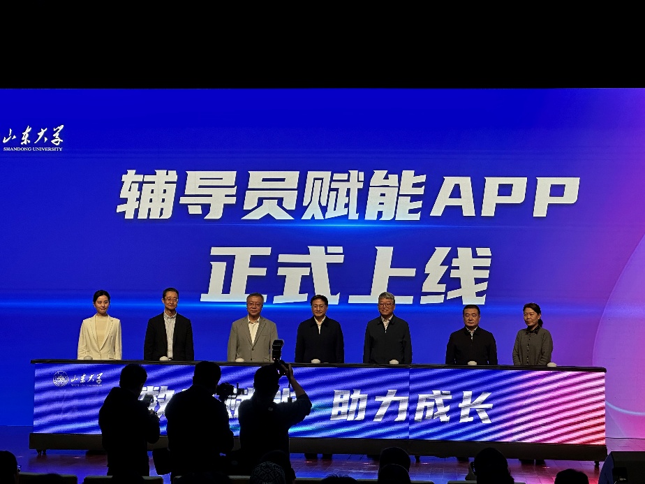 徐一菱老师(左一)与领导老师一同见证辅导员赋能APP上线
