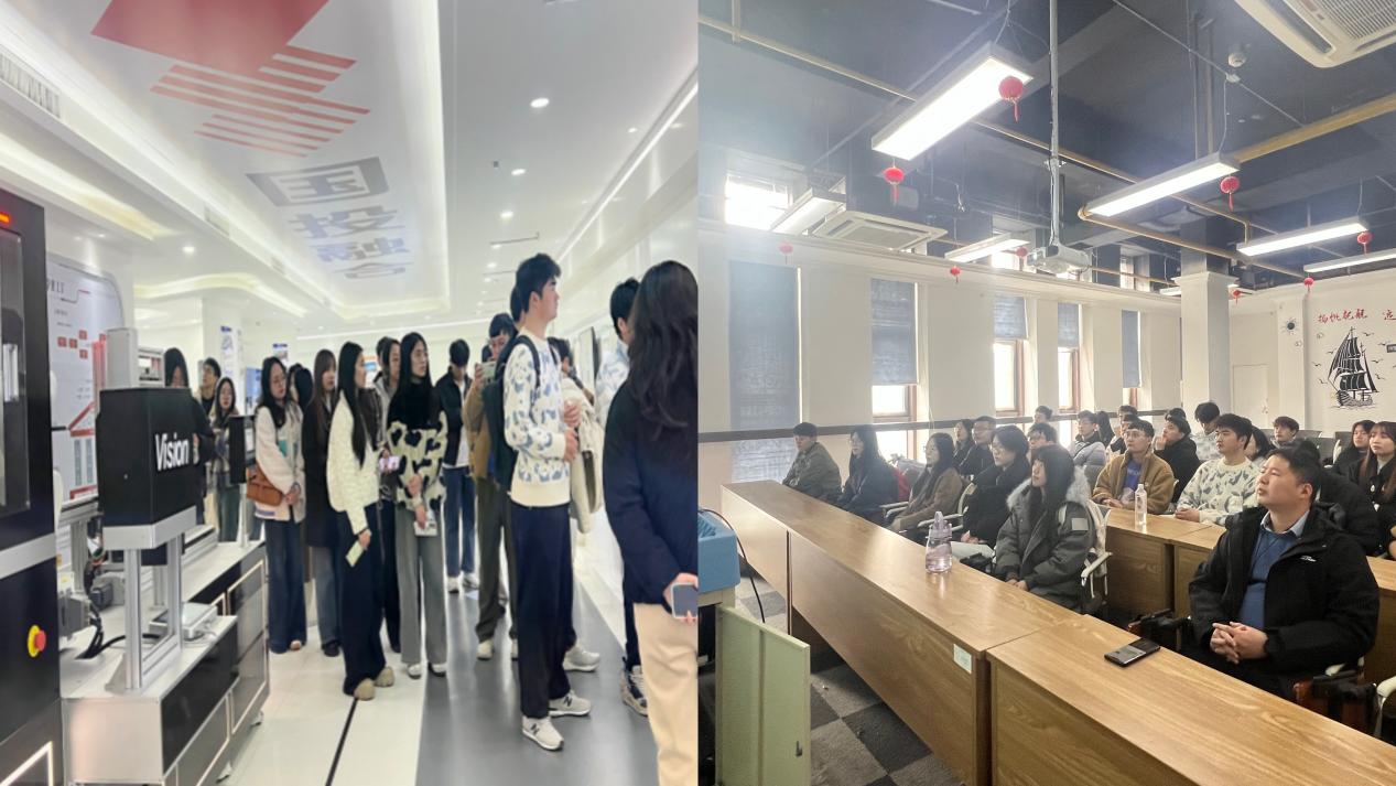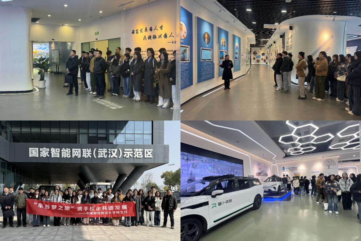 在车谷人才创新港和国家智能网联汽车(武汉)测试示范区,经开区高层次人才中心主任孙莉女士介绍了经开区在智能制造领域的发展成果以及对大数据和人工智能复合型人才的引育政策举措,师生们观摩智能网联技术和5G通信赋能智能制造的案例。