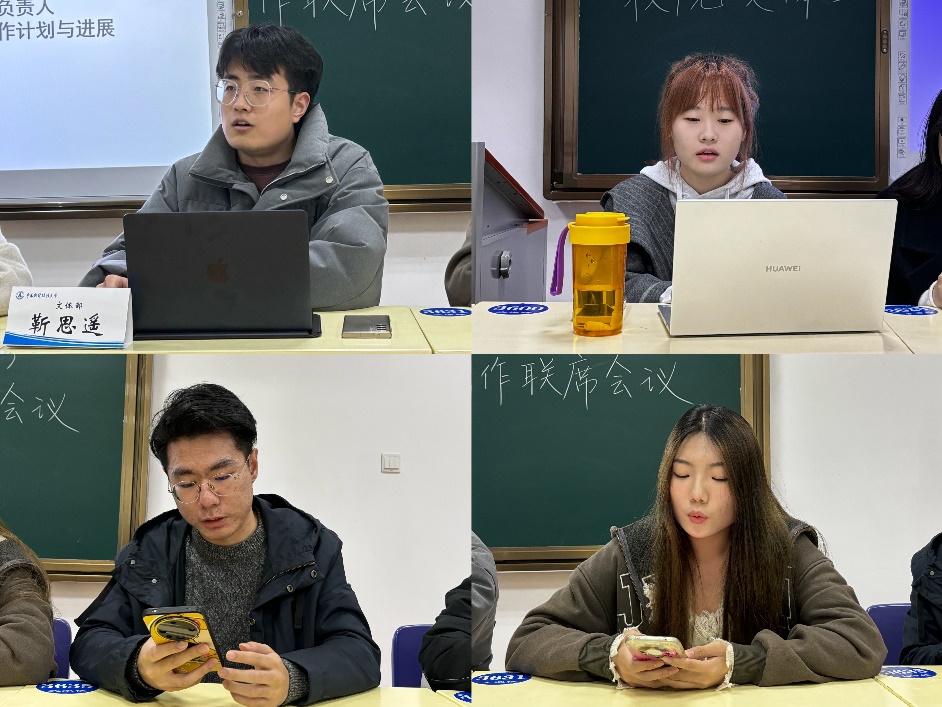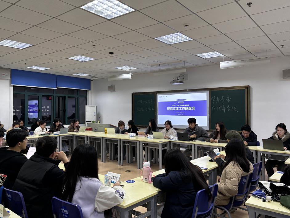 (通讯员 褚鑫颖 摄影 杜江月)为统筹推进新学期研究生文体活动高质量开展,深化校院两级协同合作,2025年3月12日晚7点,校研究生会文体部在文澴楼415组织召开校院两级研究生会文体工作联席会议。校研究生会文体部主要成员、各学院(中心)文体负责人、“青研杯”参赛队伍队长及“研风”活动负责人等40余人参会,围绕新学期文体活动策划、赛事规则优化及经验推广展开深入交流。会议由校研究生会文体部负责人吕志斌主持。