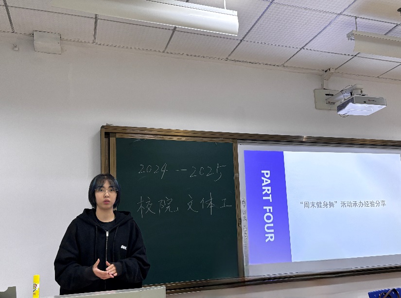 随后,刑事司法学院文体部负责人刘雯钰作为学院代表,分享“主题周定制”创新经验,通过国风周、街舞周等特色主题提升健身舞活动吸引力,并建议加强校院宣传联动,推动美育活动品牌化发展。校研会文体部现场发起活动承办接力倡议,鼓励各学院积极申报特色项目,携手共创校园美育氛围。