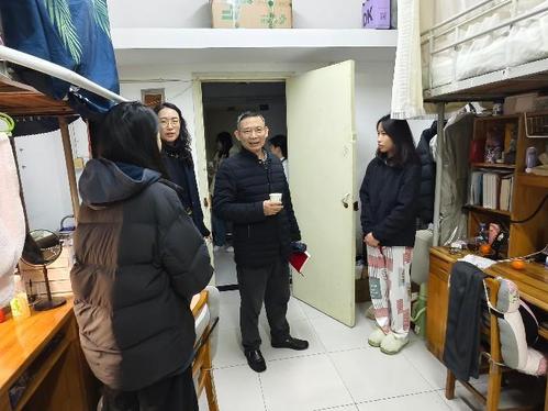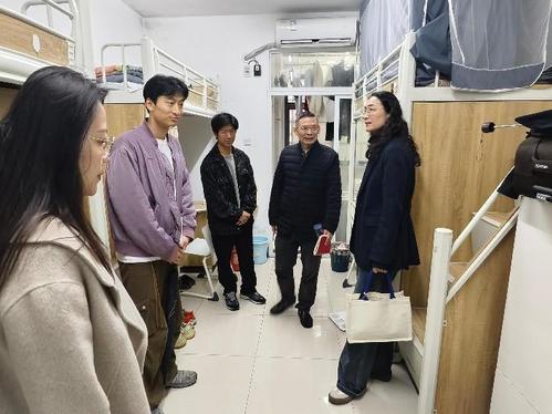 会后,师生一行实地走访学生宿舍,关心、了解同学们的生活状态。