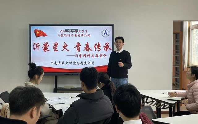 (通讯员 王路芳 梁睿涵)沂蒙精神是中国共产党人精神谱系的重要组成部分,是党和人民群众共同铸就的伟大精神。中南大薪火沂蒙宣讲团以入选共青团中央“2024年全国大学生沂蒙精神志愿宣讲团”为契机,在2024年11月—2025年2月集中开展20场沂蒙精神志愿宣讲活动,累计服务1498人次,团队总服务时长达40余小时。以青年行动发出青年声音,讲好“党群同心、军民情深、水乳交融、生死与共”的沂蒙精神所蕴含的情感、精神和力量。