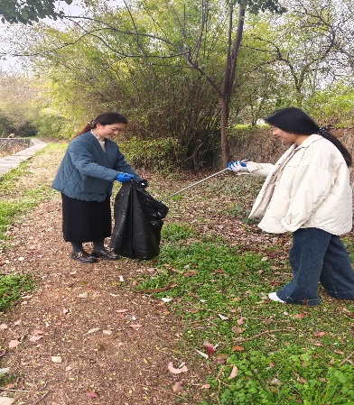 集合并领取清洁物品之后,志愿者们前往事先划分好的清洁区进行打扫,拿着垃圾夹、垃圾袋等清洁工具将小树林、水池边、花坛等角落里的碎纸屑、包装袋、饮料瓶等垃圾一一清理,顺利完成本次美丽校园创建任务。