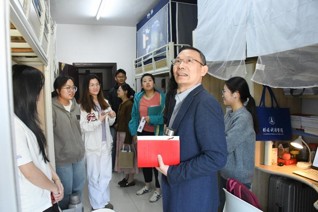 会后,师生们实地走访学生宿舍,了解同学们的生活状态。