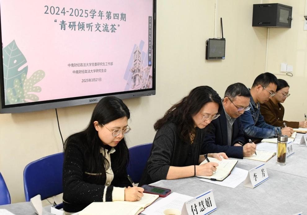 (通讯员 栗珂靖 摄影 张露)为深入了解研究生群体的学习生活状态,倾听同学们的真实想法与需求,3月21日下午,党委研究生工作部在“一站式”学生社区望湖驿站113会议室开展本学期第四期“青研倾听交流荟”师生面对面交流活动。党委研究生工作部肖翠祥部长、李芳副部长,相关科室负责老师以及来自财政税务学院的辅导员老师和10名硕博研究生代表围坐交流,共同探讨学生关心的问题,回应学生关切,共话校园发展。