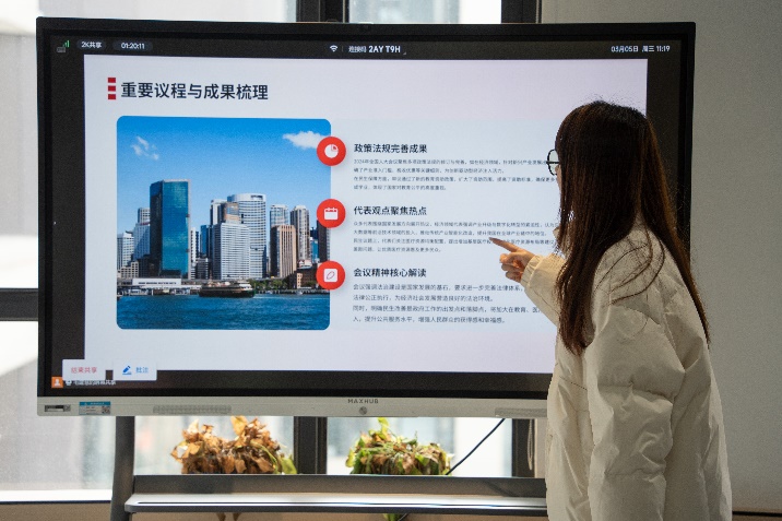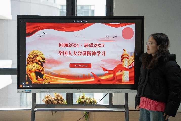 活动第一项议程,由张睿灵同学带领全体成员深入回顾2024年全国人民代表大会会议的重要议程和代表性观点。张睿灵同学详细阐述了会议中关于国家发展方向、法治建设、民生改善等议题的讨论成果,强调了这些议题对国家未来发展的重要意义。她指出,通过回顾2024年的会议内容,研究生们能够更加清晰地认识到国家发展的战略部署,为个人的学习和研究提供方向指引。