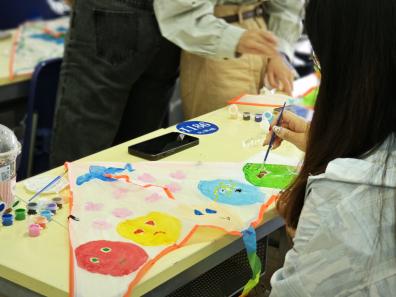 活动伊始,在破冰环节“情绪盲盒·风筝组队”中,主持人组织同学们随机抽取写有“焦虑”“惊讶”“平静”等情绪关键词的纸条。同学们依据抽到的关键词,迅速寻找有着相同情绪共鸣的伙伴,自行组成3人小队。组队完成后,各小队有序领取空白风筝与绘画工具包,为接下来的创作环节做好准备。