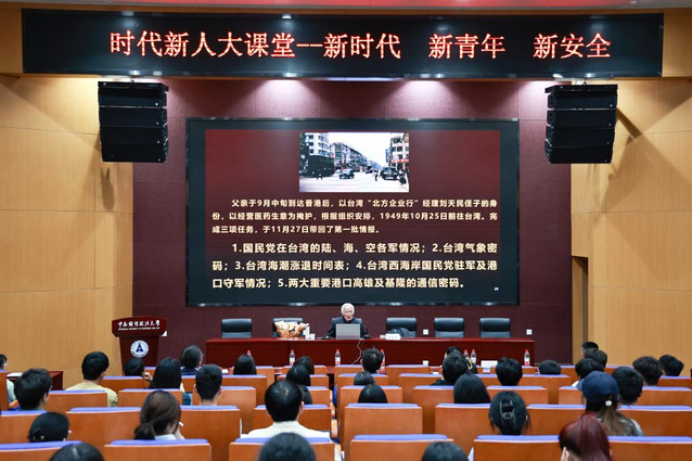 党的十八大以来,习近平总书记立足中华民族伟大复兴战略全局和世界百年未有之大变局,创造性地提出总体国家安全观。本场讲座既是一场学习总体国家安全观的理论武装,也是贯彻总书记“用好红色资源,赓续红色血脉”工作指示的具体实践。刘玉平教授通过大量珍贵的历史档案资料,介绍了党的隐蔽战线--中央特科在党的历史上写下的辉煌篇章并深情回溯了父亲刘光典烈士从事隐蔽战线工作的烽火岁月。在特殊时期,刘光典烈士毅然舍小家为大国,肩负特殊使命奔赴台湾。在危机四伏的环境里,刘光典烈士时刻面临生死考验,却始终坚守初心,在特殊战场上矢志不渝、舍生忘死,最终壮烈牺牲。刘玉平教授生动的讲述让在场师生仿若置身那段惊心动魄的历史,真切感受到隐蔽战线“于无声处听惊雷”的紧张与壮烈,深刻领悟到无名英雄们“功成不必在我”的崇高精神境界和“功成必定有我”的伟大历史担当。刘教授指出,总体国家安全观是以“总体”为关键、以“十个坚持”为核心要义的科学理论体系,我们要铭记英雄事迹,坚定理想信念,在全体中华儿女的共同努力下,刘光典烈士等英雄们的遗愿终将达成,祖国统一大业必将实现。
