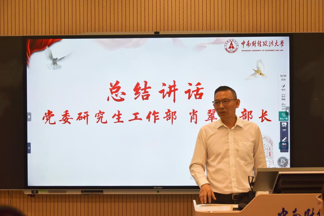 活动最后,肖翠祥部长进行总结发言。他对研究生辅导员结合工作实际深度思考导学关系表示肯定,并从学术共生、良性互动与情感共鸣等方面向大家提出建议,做好从“管理”到“共育”的范式转型。会议还就几项重点工作开展向辅导员传达并做具体工作部署。