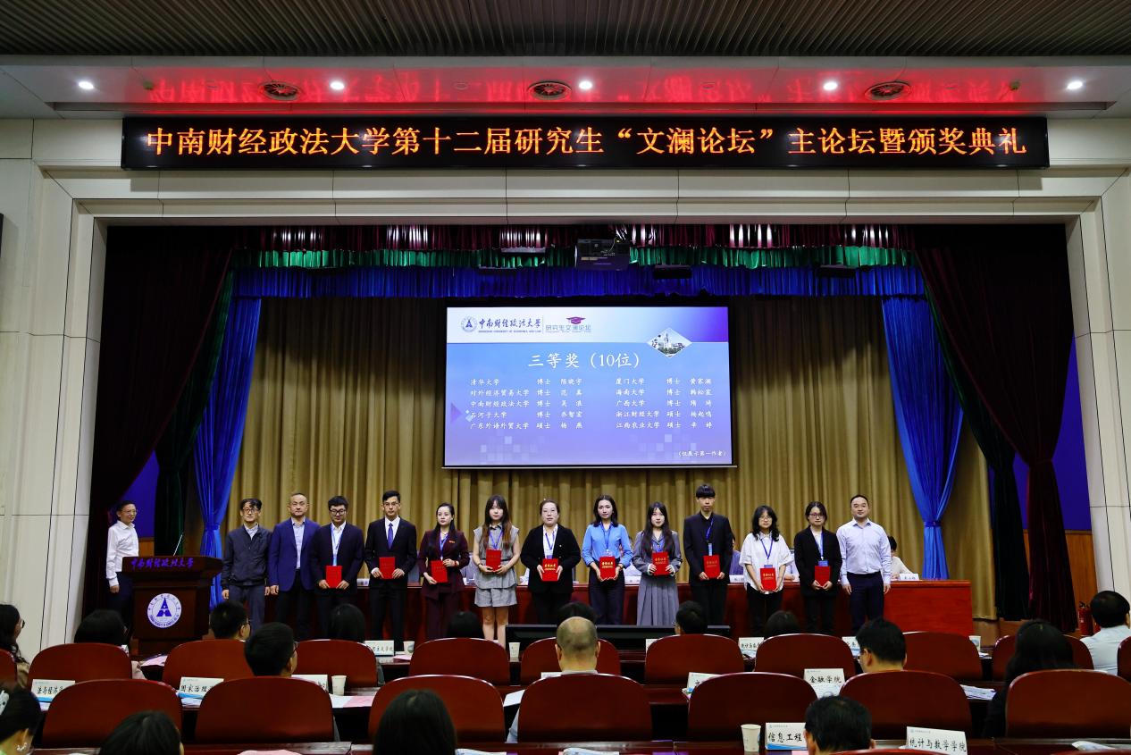 4月25日上午9时,第十二届研究生“文澜论坛”颁奖主论坛暨颁奖典礼在文泉楼学术报告厅举行。校党委副书记陈狮,校长助理、科学研究部部长李小平,国家人才计划特聘教授、武汉大学经济与管理学院教授李青原,电子科技大学张引研究员等特邀嘉宾出席颁奖典礼。本届论坛评审委员会专家学者,学校相关职能部门及各学院(中心)分管研究生教育负责人,本届论坛获奖论文作者、华中地区高校青年代表及各学院(中心)研究生代表300余名师生参加论坛。颁奖典礼由党委研究生工作部部长肖翠祥主持。