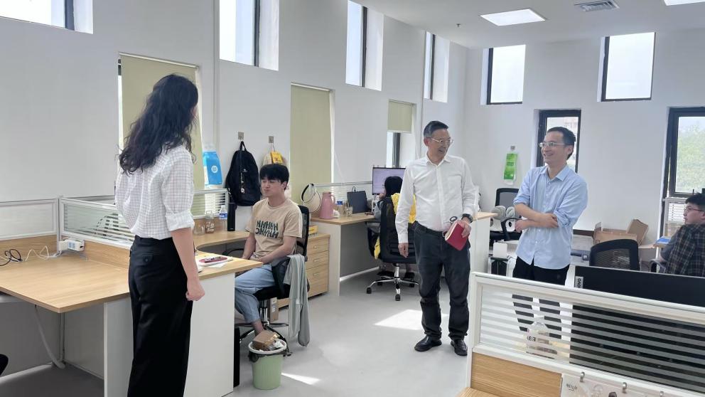 会后,师生一行实地走访双创楼B栋硕博研究生学习室,了解同学们日常学习状态,与同学们亲切交流。