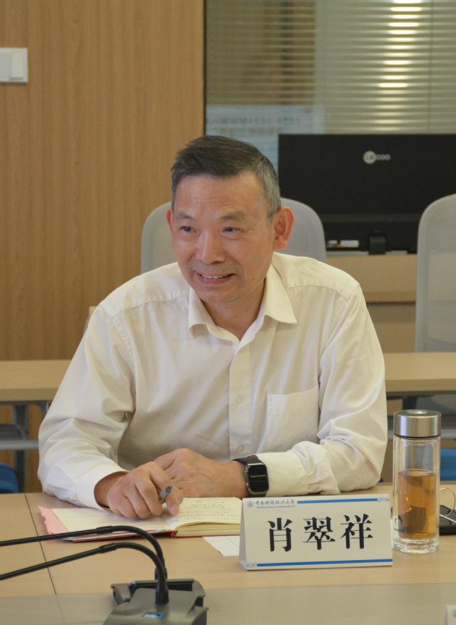 会议伊始,肖翠祥部长向与会师生表达亲切问候。肖部长指出,在人工智能技术重塑全球产业格局的背景下,本次座谈会聚焦“高质量发展大研学”主题,师生共议数智赋能跨学科发展,探讨AI时代背景下复合型人才培育路径。