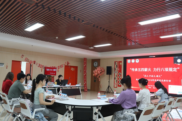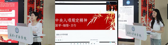 在深入学习贯彻中央八项规定精神宣讲环节,中南财经政法大学研究生宣讲团成员王今通过梳理中央八项规定精神的发展脉络,强调青年的作风建设永远在路上;湖南大学法学院习近平法治思想宣讲团成员李昀寰从深学、细悟、力行三个维度讲述青年学习中央八项规定精神的要求;武汉大学法学院习近平法治思想宣讲团成员邹倩懿从学术科研、社团活动、择业就业等角度讲述青年贯彻中央八项规定精神的实践意义。
