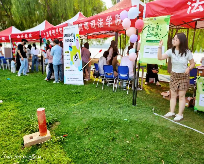 (通讯员 张秋蕊 方家乐 向珂莹)倾听心灵呼唤,守护青春成长。为引导研究生群体关注心理健康、缓解学业压力、增强人际联结,中南财经政法大学法学院于2025年5月25日在南湖校区南湖阳台举办了“心旅寻光,向阳而行”5.25研究生心理游园会活动。此次活动以趣味互动与心灵疗愈为核心,在春日暖阳中构筑起守护心理健康的温暖阵地。