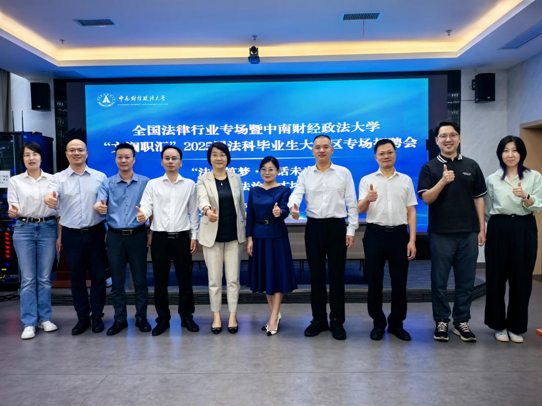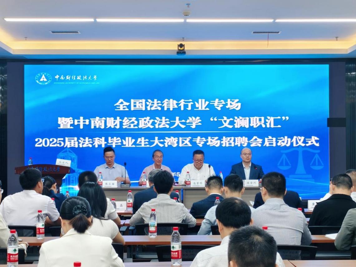 上午9时,大湾区专场招聘会启动仪式在中南财经政法大学南湖校区法学科研大楼一楼会议室举行。学校就业指导服务中心主任温习,法学院党委书记高碧峰,法学院、纪检监察学院(国家治理学院)、知识产权学院、国际法学院分管负责人出席会议,大湾区用人单位、校友代表及2025届毕业生代表参加会议。