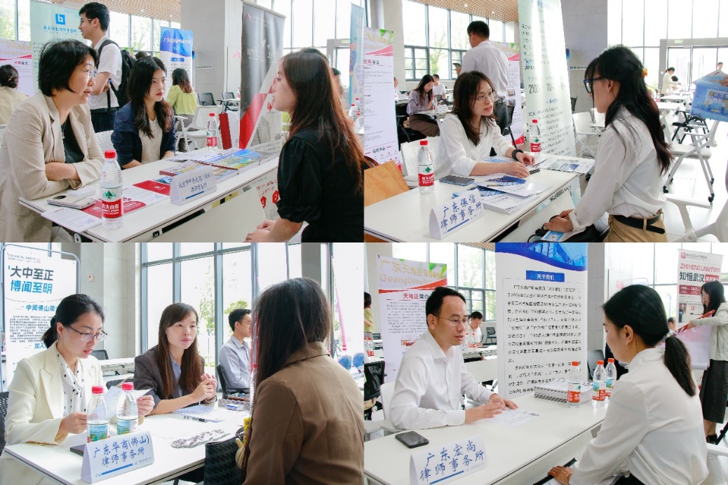 招聘会现场气氛热烈,32家粤港澳大湾区律所等用人单位提供民商法律、刑事辩护、知识产权等150多个就业及实习岗位,需求覆盖本科和研究生各层次人才。2025届毕业生与在校生手持简历穿梭于展位间,主动与招聘人员交流岗位要求、职业发展前景及薪资体系等信息,不少学生结合法律实习、模拟法庭等实践经历展现专业素养。中伦文德、广东保信、广东华商、广东宏尚等律所展位前人头攒动,招聘负责人通过案例分享、行业动态解读等方式,向学生介绍行业动向和业务特色,吸引众多学子驻足咨询。