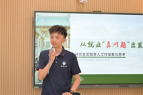 党委研究生工作部部长肖翠祥、副部长李芳出席会议,学院分管研究生教育副书记、研工部相关科室负责人、专职研究生辅导员参与活动。本期案例坊特邀华中师范大学中国农村研究院/政治科学高等研究院专职辅导员、团委书记韩梦龙、武汉大学新闻与传播学院团委副书记、研究生辅导员杨辉作经验分享。
