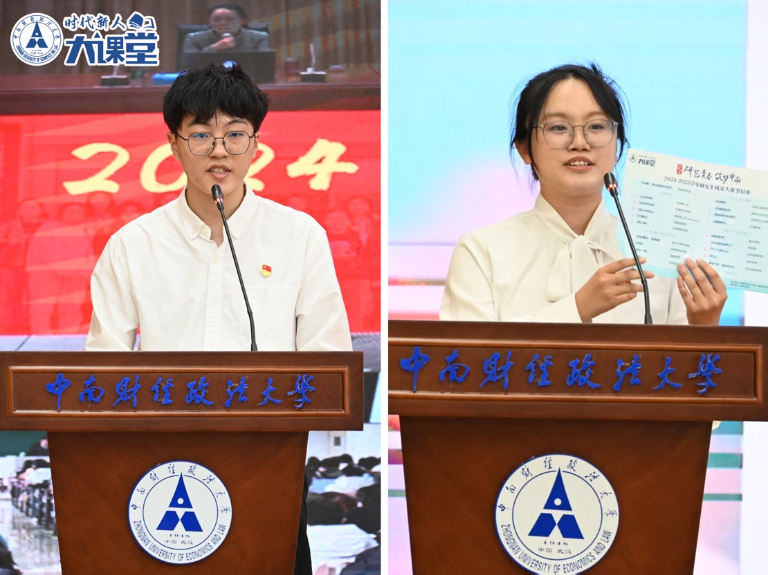 金融学院研究生会主席团成员杜泽中、优秀研究生干部 法学院2023级硕士研究生吕志斌分享汇报
