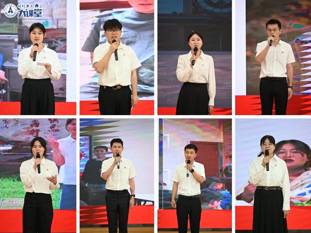 党员标兵王佳媛、钱智勇、张怡歌、陈奕景、张欢、梁睿涵、李金龙、高重阳带来展示汇报《青春礼赞 榜样之声》