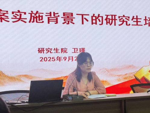 卫瑾副院长围绕新时代背景下的研究生培养改革,介绍2025版培养方案的修订思路、进展成效和关键变化,就如何把握培养计划制定、选课、课程考核等研究生培养关键环节,确保新版培养方案落地提出工作要求,指导并希望研究生辅导员做好政策宣传解读、信息沟通反馈,提升研究生学业规划指导、就业指导等管理服务工作的精准性和前瞻性,助力构建协同育人机制,形成育人合力。