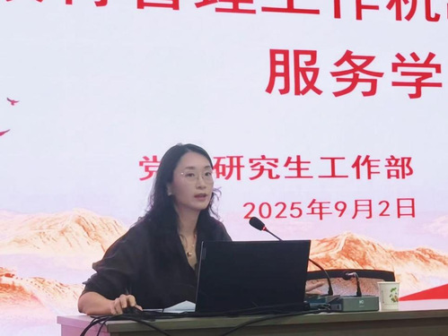 研究生管理办公室杨威主任、研究生思政办公室付慧娟主任结合近期工作,分别围绕“研究生资助育人和管理服务”“辅导员队伍建设”主题进行汇报分享。