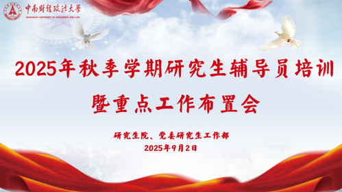 (通讯员 付慧娟 黄丽琼 余兮 摄影 杨佳彬 任蔷冰)为落实全国教育大会精神,深入实施新时代立德树人工程,加强研究生辅导员队伍建设,做好学校新学期重点工作的传达部署和具体安排,2025年9月2日下午,研究生院、党委研究生工作部于法学科研大楼党团活动室召开了2025年秋季学期研究生辅导员培训暨重点工作布置会。党委研究生工作部部长张文剑、副部长李芳、研究生院副院长卫瑾出席会议,相关科室负责人、全体专职研究生辅导员、兼职带班研究生辅导员参与活动。活动由李芳副部长主持。