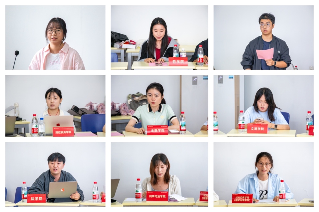 各学院研究生会相关负责人围绕组织架构、工作安排与特色活动三个方面进行了工作分享。本次会议上,新成立的知识产权学院和国际法学院代表分别介绍了本院研究生会的建设规划与发展思路。各学院负责人表示强调将进一步加强与其他组织及部门的沟通协作,不断提升服务效能,努力满足广大师生的各项需求。各学院(中心)研究生会相关负责人从组织架构、工作安排、特色活动等三个方面对工作进行分享。依托此次会议,各学院(中心)报告了院级研究生会换届情况以及各部门计划举办的活动。其中,新产生的知识产权学院、国际法学院院研究生会负责人介绍了院研究生会建设计划。财政税务学院、国际法学院、工商管理学院、公共管理学院、外国语学院等学院表示要打造学术特色品牌,做实基础服务,回应同学需求。各学院(中心)负责人均对校院两级联动活动、师生联谊活动提出计划,加强与其他组织部门的沟通交流,力争做好服务工作,满足师生各项要求。