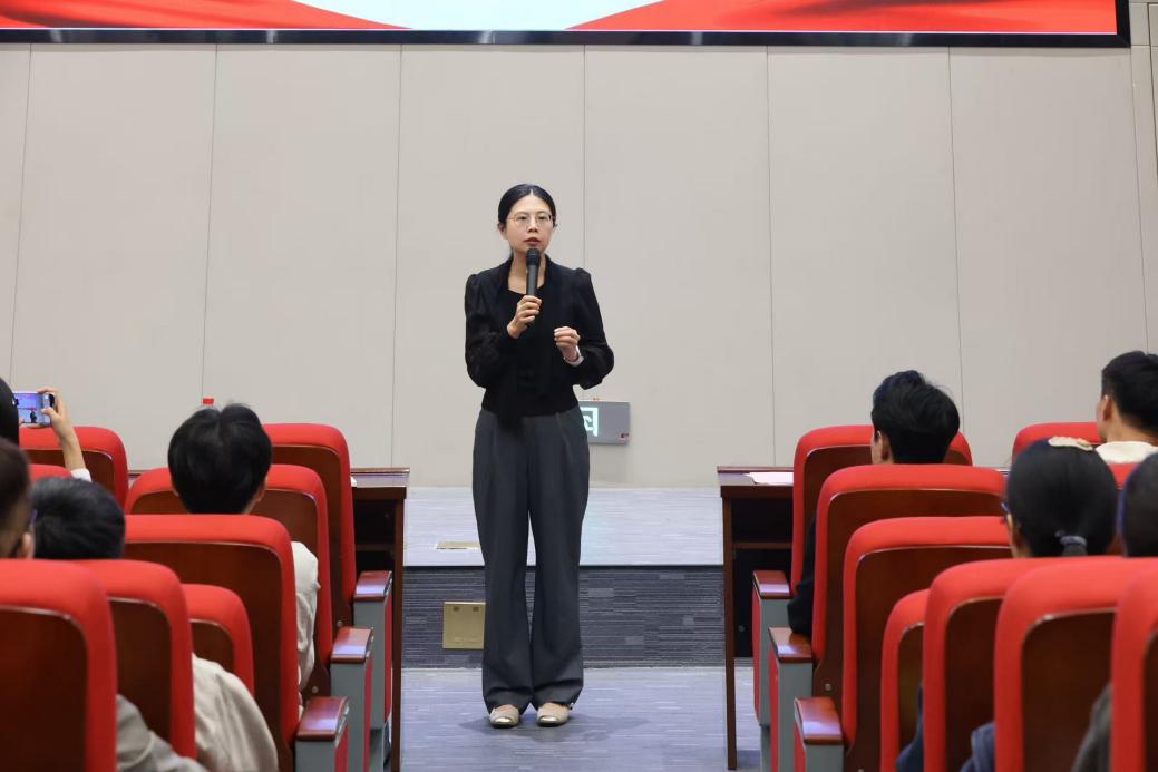 付慧娟老师作为指导教师发言。她对新成员的加入表示欢迎,希望大家始终牢记服务广大同学的根本宗旨,成长为政治过硬、服务高效、提升迅速的研究生骨干。一是以态度彰显政治站位。新成员要主动对标新时代高校研究生会建设要求,在履职尽责中厚植家国情怀。二是将目标锚定服务宗旨。精准对接研究生在思想成长、学术科研、求职就业、生活保障中的疑难困惑和实际诉求,把个人成长追求融入服务同学的过程中。三是以实干检验工作实效。沿着从“新手”到“能手”、从“服务者”到“引领者”的成长路径,在办实事、解难题、搭平台中实现个人成长与组织发展。