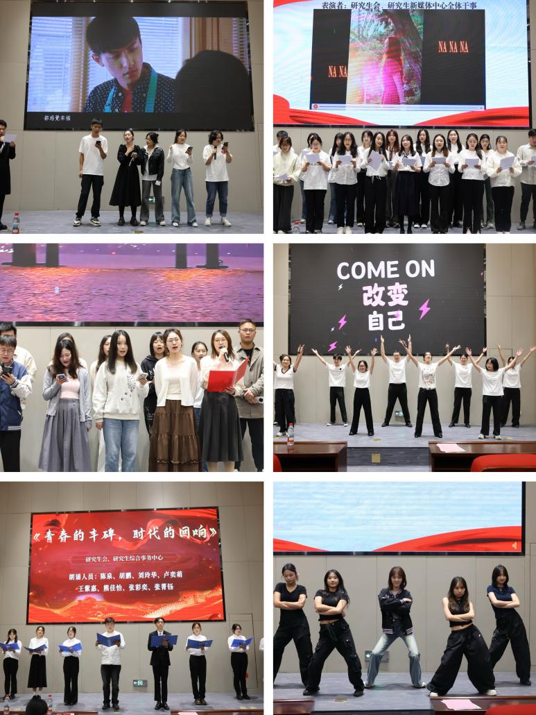 活动最后同学们带来风采展示。秘书处、研究生综合事务中心同学带来的诗歌朗诵《青春的丰碑,时代的回响》,以悠扬的旋律和饱满的热情给同学们留下深刻印象,歌舞《改变自己》动感十足,充分展现了同学们的青春活力。学术部、研究生学术创新中心的歌曲串烧演绎默契,赢得阵阵掌声。文体部、研究生艺术美育中心的舞蹈《Abracadabra》《一程山路》展现了同学们的默契配合与完美衔接,歌曲《无名的人》更是将现场气氛推向高潮。宣传部、新媒体中心的合唱串烧唱出了独属于他们的青春风格。生活权益部、研究生发展中心的合唱《小美满》如同一把钥匙,打开了同学们的青春记忆之门。联络服务部、研究生服务中心的合唱《New Boy》以轻快的节奏,带着同学们进入无比欢乐的氛围。主席团成员及部门负责人合唱《陪你度过漫长岁月》,展现了新一届校级研究生组织的青春洋溢,让见面会在温馨的氛围中完美收尾。