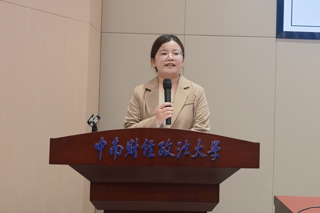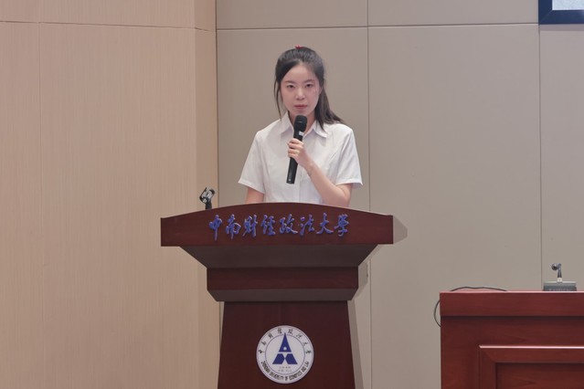 接下来,《中南研语》编辑部执行主编陈梓钰发言。她代表《中南研语》编辑部对新成员的加入表示诚挚欢迎,并从刊物定位、栏目设置及近年来的创新探索等方面,对《中南研语》编辑部进行了详细介绍。同时,她围绕“坚持思想引领、推进文化建设”“保障办刊质量、创新形式内容”“完善制度规范、加强团队建设”三个方面,分享了刊物未来发展方向和工作规划的思考,期望与全体成员携手同心、积极作为,共同推动《中南研语》在传承中创新、在突破中成长,为校园文化建设与研究生思想交流持续贡献力量。