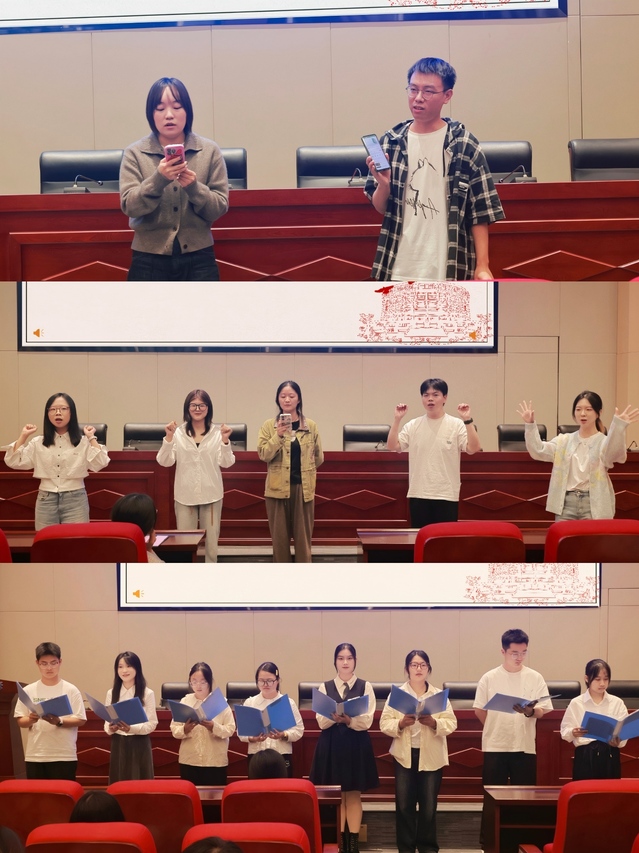 两位同学发言后,《研论丛》编辑部、《中南研语》编辑部新一届编委会成员进行了风采展示。《研论丛》编辑部以一首朗诵《青春扬帆正当时,争做时代追梦人》惊艳亮相,激昂的文字中饱含对青春与使命的思考,生动诠释青年担当。《中南研语》编辑部带来精彩表演,先温情演唱歌曲《Last Dance》,用动人旋律打动全场;随后又以活力唱跳《小美满》点燃氛围,充分彰显新一届编委会成员的精神面貌与青春活力。