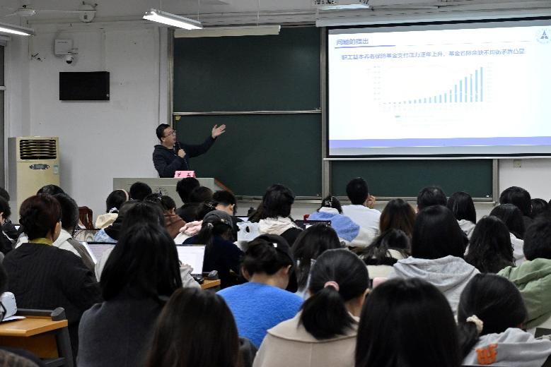 (通讯员 田雨 王璐婷)10月22日晚,由中南财经政法大学研究生院、党委研究生工作部、中南财经政法大学研究生会主办,中南财经政法大学公共管理学院研究生会承办的第363期“文澜大讲堂”之名家讲坛——《养老保险全国统筹制度的研究进展与总结》学术讲座在文添楼311举行。本次讲座特邀中南财经政法大学公共管理学院曾益老师担任主讲嘉宾,公共管理学院辅导员魏晨雪老师主持,公共管理学院2025级硕士研究生参加学习。
