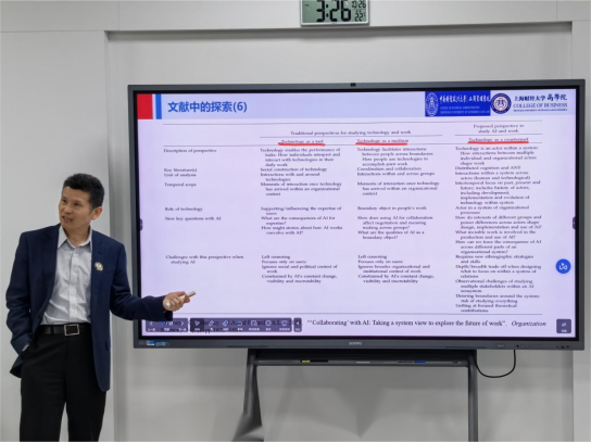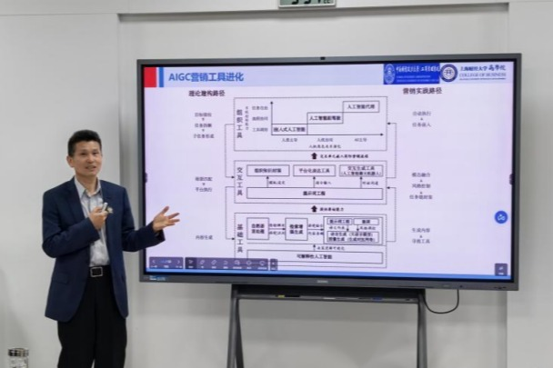 讲座过程中,高维和教授结合行业实践与学术观察,指出当前智能营销面临的三大挑战。结合国内外核心文献,梳理了AI在营销领域的四大研究热点及成果。基于现有研究,高维和教授提出“五位一体”的智能营销研究框架,为师生搭建了清晰的理论分析体系。随后,他通过对比分析式营销与AIGC营销的差异,指出AIGC技术正推动营销领域发生工具、内容、体系三大方面的转变。最后,谈及未来发展,高维和教授对师生提出接纳技术以促进效率提升,以及回归营销本质,实现“技术技能”与“专业素养”协同提升的两点核心建议。