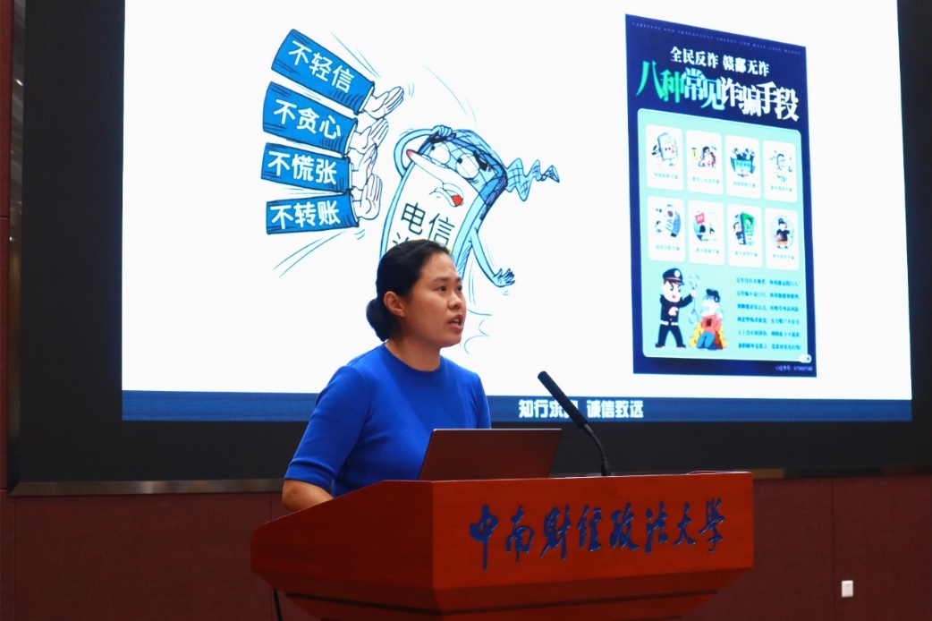 赵元元老师对研究生管理规范进行介绍与解读,着重讲述日常管理制度和研究生思政与奖助制度等内容。她指出,研究生应严格遵守学校各项规章制度,共同营造安全、有序、和谐的学习和生活环境。她结合案例对研究生进行安全教育建议他们可以充分利用学校心理中心和就业指导服务中心的各类资源,提升自身情绪调节与适应能力。
