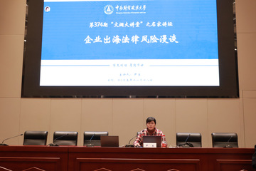 (通讯员张瀚文李紫阳)11月18日18:30,由中南财经政法大学研究生院、党委研究生工作部、中南财经政法大学研究生会、研究生学术创新中心主办,中南财经政法大学法学院、中南财经政法大学法学院研究生会承办的第374期“文澜大讲堂”之名家讲坛:“企业出海法律漫谈”专题讲座在法学科研大楼大报告厅如期举行。本次讲座特邀中南财经政法大学法学院教授尹生老师主讲。法学院200余名硕博研究生参与了此次讲座。