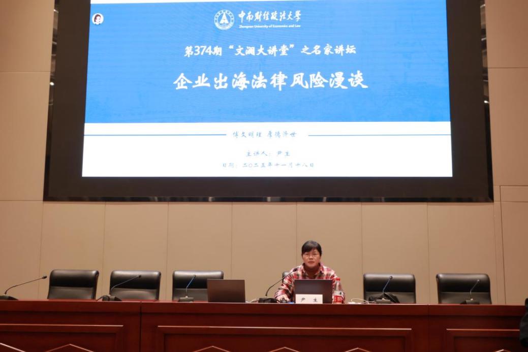 (通讯员 张瀚文)11月18日18:30,由中南财经政法大学研究生院、党委研究生工作部、中南财经政法大学研究生会、研究生学术创新中心主办,中南财经政法大学法学院、中南财经政法大学法学院研究生会承办的第374期“文澜大讲堂”之名家讲坛——企业出海法律漫谈专题讲座在法学科研大楼大报告厅如期举行。本次讲座特邀中南财经政法大学法学院教授尹生老师主讲。法学院200余名硕博研究生参与了此次讲座。