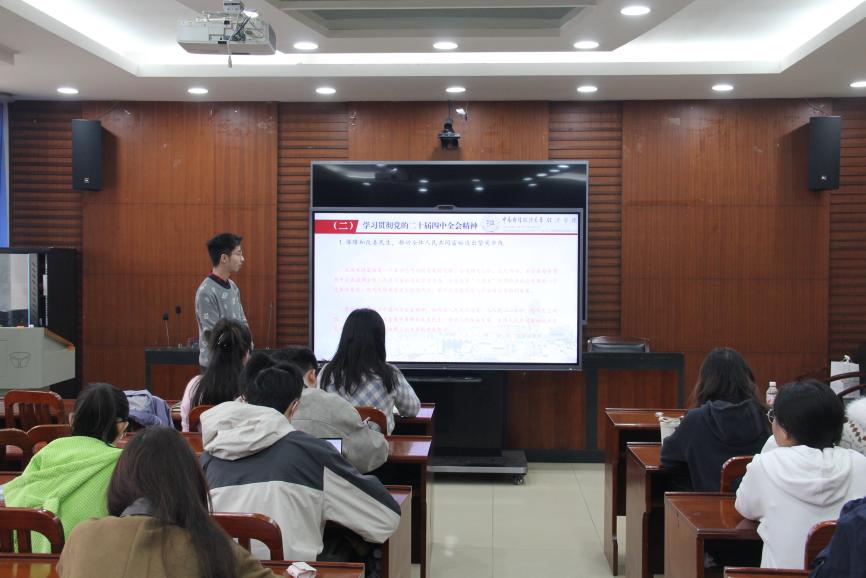 朋辈领学环节,经济学院习近平经济思想理论宣讲团团长汪颢哲从三方面开展,带领全体研究生骨干系统学习了党的二十届四中全会精神,重点学习了“十五五”时期经济社会发展的主要目标。全体研究生骨干通过原原本本学、联系实际学,进一步领会全会精神的时代内涵与战略部署。
