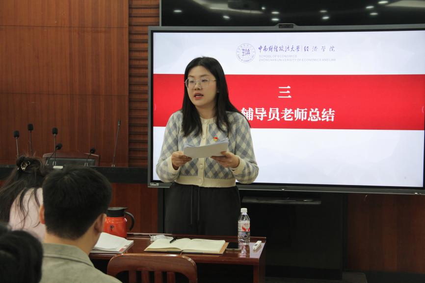 (通讯员 雷菁 田怡可)为深入学习贯彻习近平新时代中国特色社会主义思想,深刻领会、准确把握党的二十届四中全会精神的要义,引导经济学院研究生深刻把握“十五五”时期经济发展的指导方针和主要目标,2025年11月11日下午,经济学院于文泉楼南206室组织开展“党的二十届四中全会精神学习会暨研究生骨干培训”。研究生办公室主任岳明泽老师、研究生辅导员雷菁老师出席会议,全体研究生骨干参会,会议由研究生会主席团成员寿瑞俊主持。
