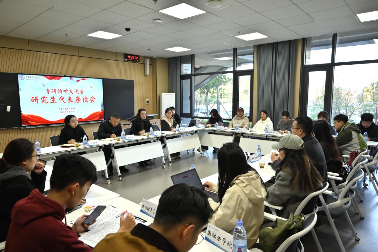 (通讯员 龙子腾 摄影 吴嘉)为深入贯彻落实“以学生为中心”的工作理念,聚焦“人才培养改革年”,广泛征集同学们关于研究生管理制度、研究生综合服务平台业务办理、2025版研究生培养方案实施成效等方面的意见建议,了解同学们的在校学习生活体验,准确掌握研究生思想动态,建立学校和研究生间的常态化沟通机制,11月28日上午,党委研究生工作部在文瀚楼北108案例研讨室召开11月研究生代表座谈会。党委研究生工作部部长张文剑、副部长李芳出席会议,研究生思政教育办公室付慧娟、黄丽琼以及20个研究生培养单位的研究生代表参加座谈会。