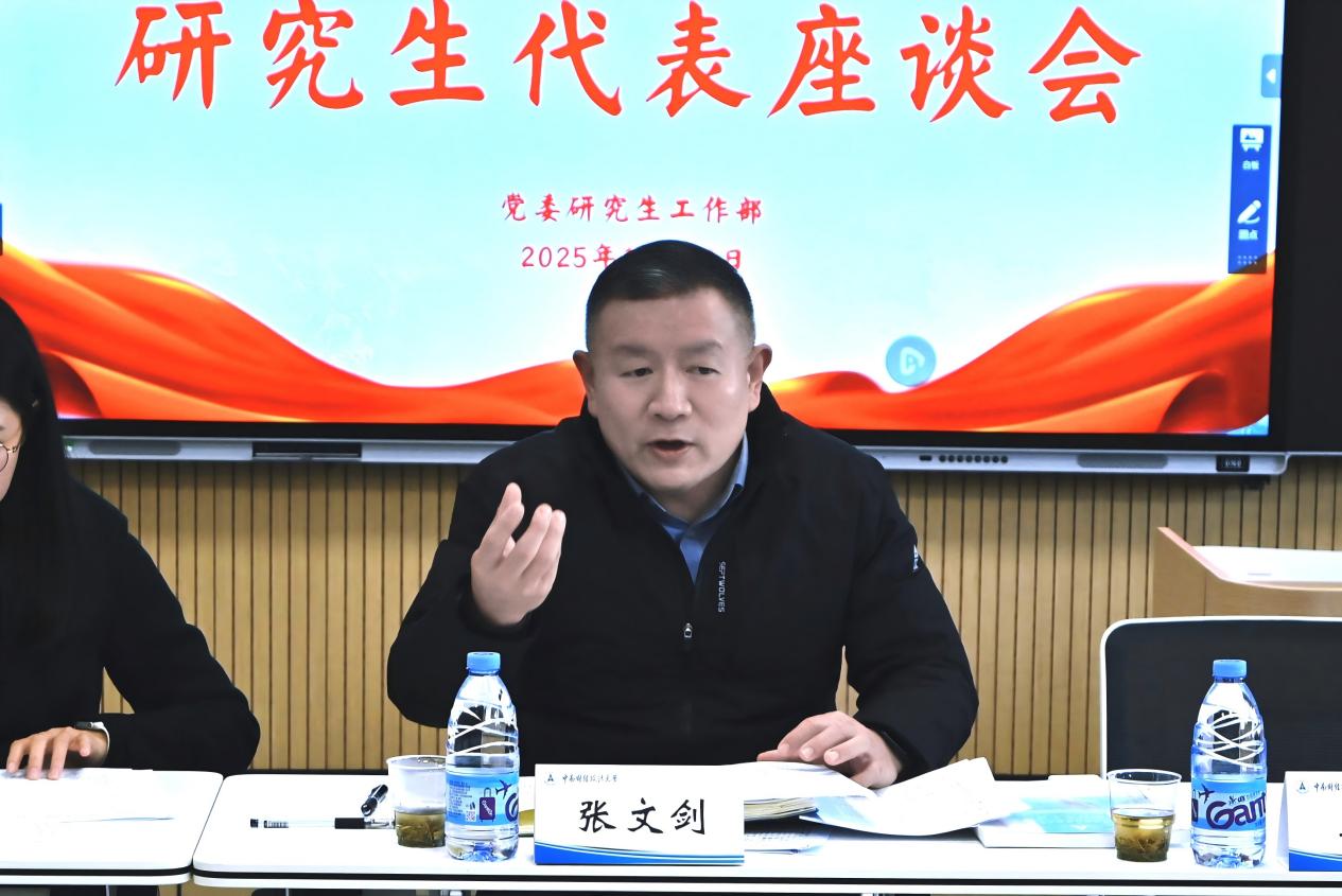 张文剑部长高度肯定同学们的分享,表示既有对个人成长的深入思考,也满怀对学校发展的真切关心,深刻展现研究生学子有思想、有情怀、有担当的优秀品质。在回应大家的意见建议后,张部长表示,为促使学校各项人才培养改革举措更精准地回应学生期待,更好激发大家“校兴我荣”的主人翁精神,党委研究生工作部建立每月1次的“青研倾听交流荟”研究生代表座谈机制,倾听学生心声、了解真实需求、精准服务学生。他希望大家以发展的眼光和建设性的心态看待学校在改革发展进程中遇到的阶段性情况,始终秉持平和、理性的态度,为学校发展建言献策,共同营造积极向上的育人环境。他勉励同学们珍惜宝贵学习时光,专注学业,提升自我,在与学校的同向同行中书写精彩青春。
