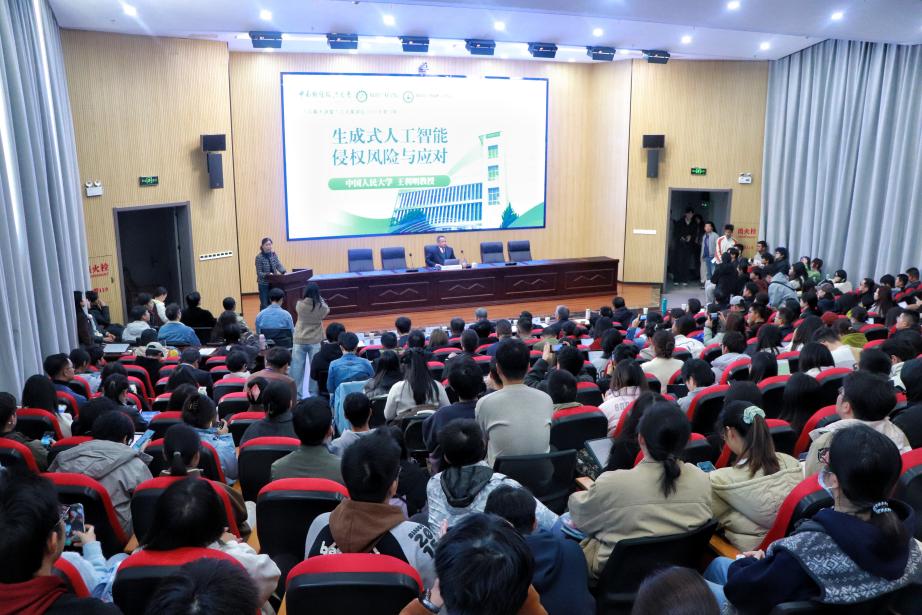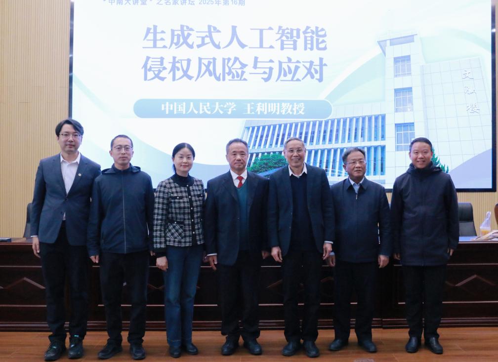 (通讯员:吉宇、刘璟仪;摄影:张涛、徐丽娟)2025年11月30日上午,著名民商法专家、中国人民大学一级教授、博士生导师王利明莅临中南财经政法大学知识产权学院、知识产权研究中心,以“生成式人工智能侵权风险与应对”为题开展学术分享。中南财经政法大学文澜资深教授吴汉东,中南财经政法大学知识产权学院院长黄玉烨,知识产权研究中心主任彭学龙,科学研究部副部长邢海亮,知识产权学院副院长詹映、徐小奔出席活动。现场座无虚席,近300名师生专注聆听、学术氛围浓厚热烈。此次活动系“文澜大讲堂”之名家讲坛(第381期),由中南财经政法大学研究生院、党委研究生工作部、中南财经政法大学研究生会主办,中南财经政法大学知识产权学院研究生会承办。