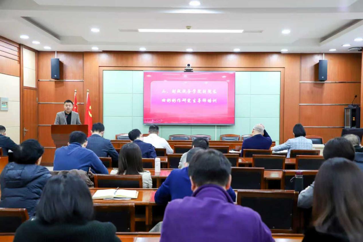 为切实强化研究生导师“立德树人”第一责任人职责,财政税务学院于11月6日下午开展了研究生导师集中学习和培训活动。本次研究生导师培训的主题是“不忘立德树人初心,做‘四有’好导师”。培训活动由财政税务学院田彬彬副院长主持,全体研究生导师包括新任研究生导师参与了本次学习活动。