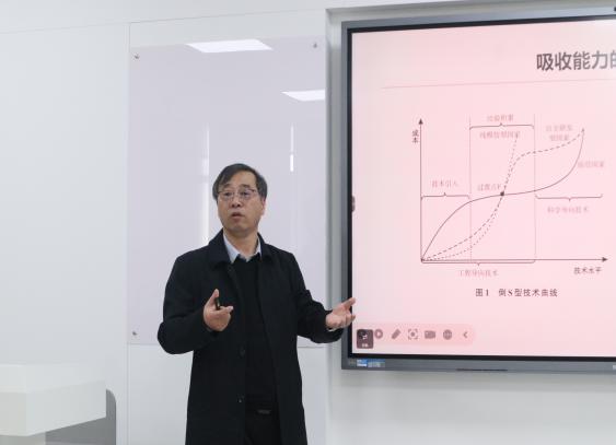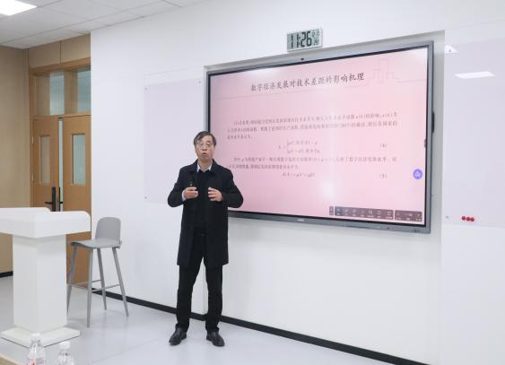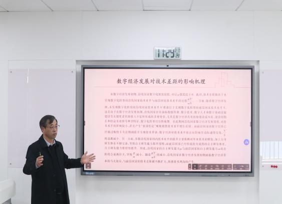 在讲座过程中,蔡翔教授结合历次工业革命中的技术追赶史实与前沿学术研究,系统剖析了数字经济发展对后发国家技术追赶产生的双重影响。他指出,数字经济既可通过技术溢出与要素重组为追赶提供“机会窗口”,也可能因数字壁垒与“破坏效应”加剧技术鸿沟,使其呈现复杂的“双刃剑”特征。最后,针对如何推动实现有效追赶,蔡翔教授提出了四方面政策启示:持续激发“一带一路”沿线国家数字经济合作活力;不断增强沿线国家自身技术吸收能力;积极扩大相互开放以突破国家规模局限;充分发挥中国对规模较小国家的技术追赶“拉拔效应”。