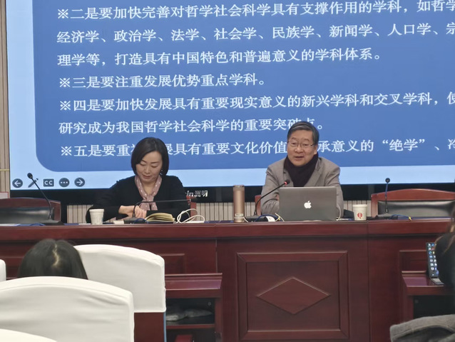 (通讯员:王路芳 张作滔)12月24日上午,由中南财经政法大学研究生院、党委研究生工作部和校研究生会主办,哲学院承办的“第394场文澜大讲堂”在文沛楼二楼会议室成功举办,本次讲座特邀中国社会科学院大学赵剑英教授主讲,由哲学院副院长万健琳教授主持,学院部分硕士生、本科生到场聆听学习。