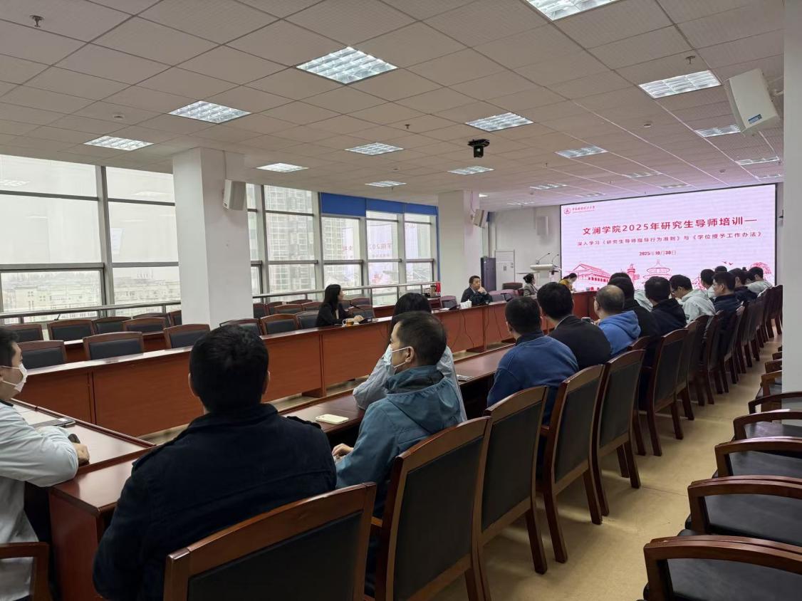 根据学校有关要求,10月30日上午,文澜学院开展2025年研究生导师培训会,对《研究生导师指导行为准则》与《学位授予工作办法》进行专题学习。培训会由副院长帅杰主持,院党委书记彭晓燕出席会议,全院研究生导师参加此次培训。